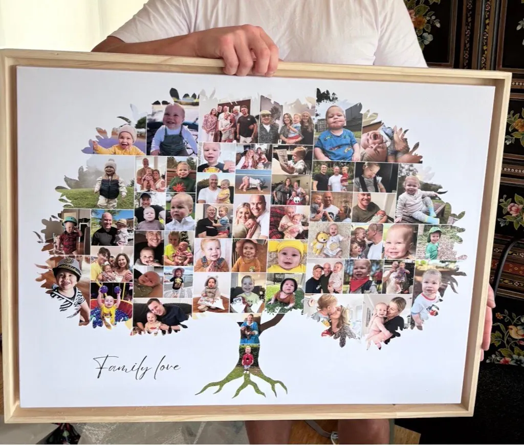 I bought the large sized, framed Tree Collage print for my son’s birthday and we all absolutely love it. Laura was so helpful when I decided to change some pics and responded immediately. So happy with the finished product.