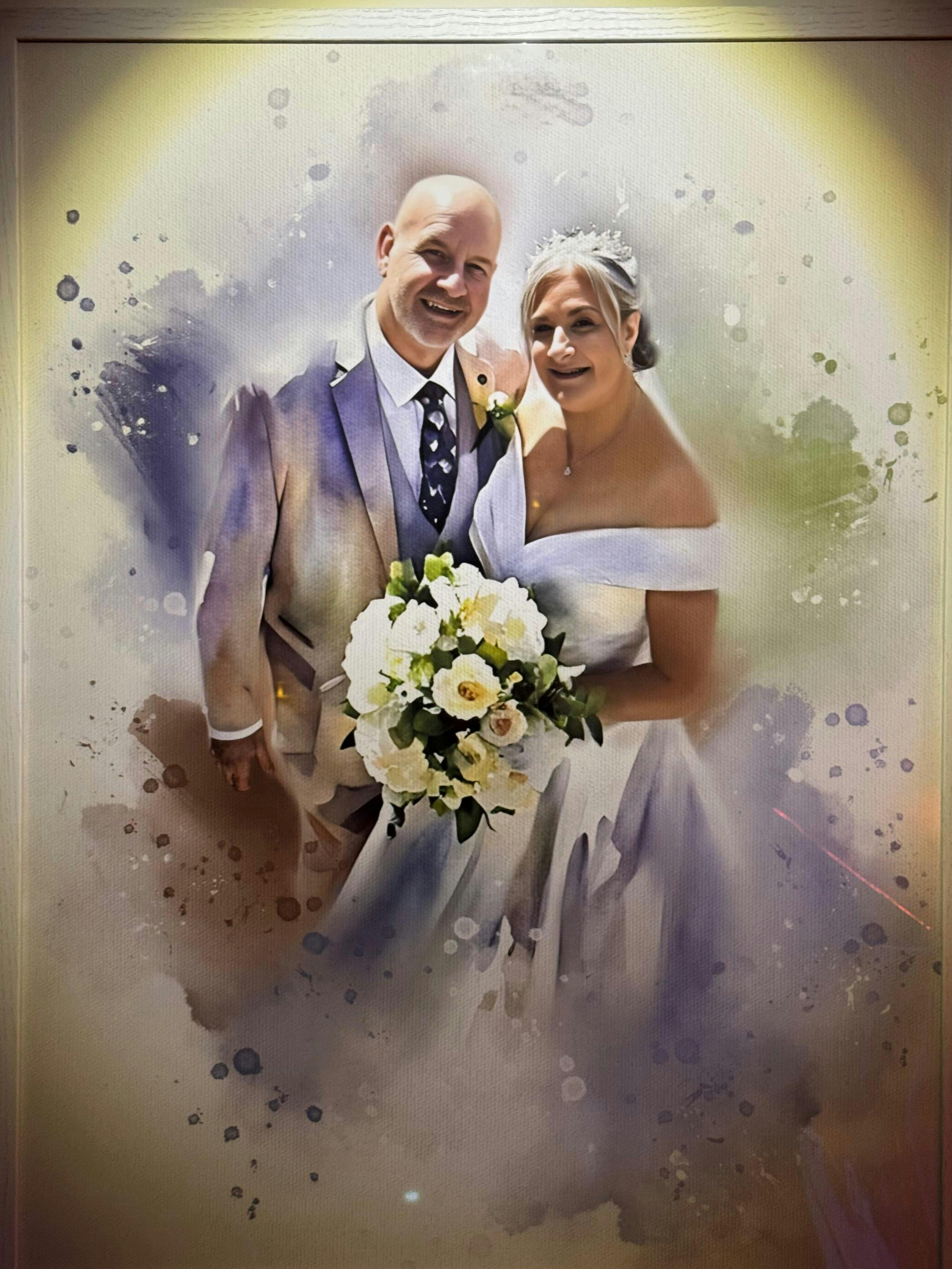 My wife of 38 years was brought to tears upon seeing her anniversary gift watercolor of one of our wedding photos.